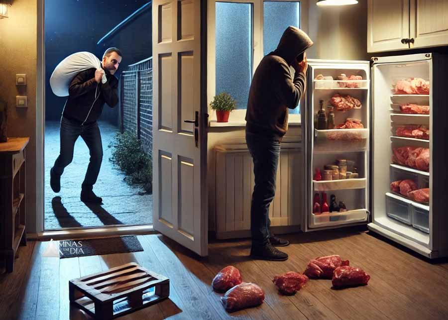 Durante patrulhamento de rotina, os policiais foram acionados para atender a uma denúncia de furto tentado. Ao chegarem ao local, constataram que o autor havia pulado o muro dos fundos da casa, acessando o lote e invadindo a cozinha da residência. O homem então se dirigiu até um congelador, onde encheu um saco com peças de carne. Quando tentava sair do local com o saco de carnes nas costas, foi surpreendido por uma das vítimas, que prontamente acionou a Polícia Militar.
