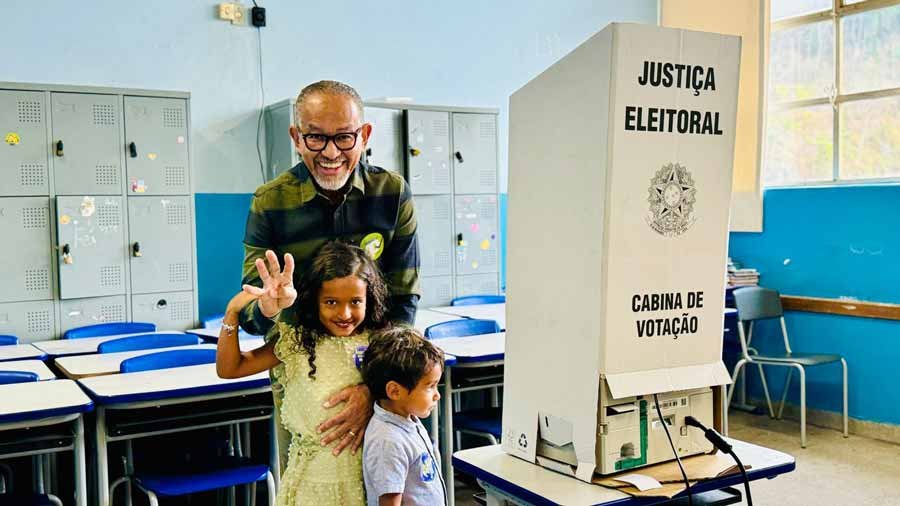 Marco Lage votou na Escola Estadual Manoel Soares, em Ipoema, acompanhado dos filhos mais novos. Antes, participou de uma missa no distrito com a mãe Nice, a esposa Raquell e demais filhos.
