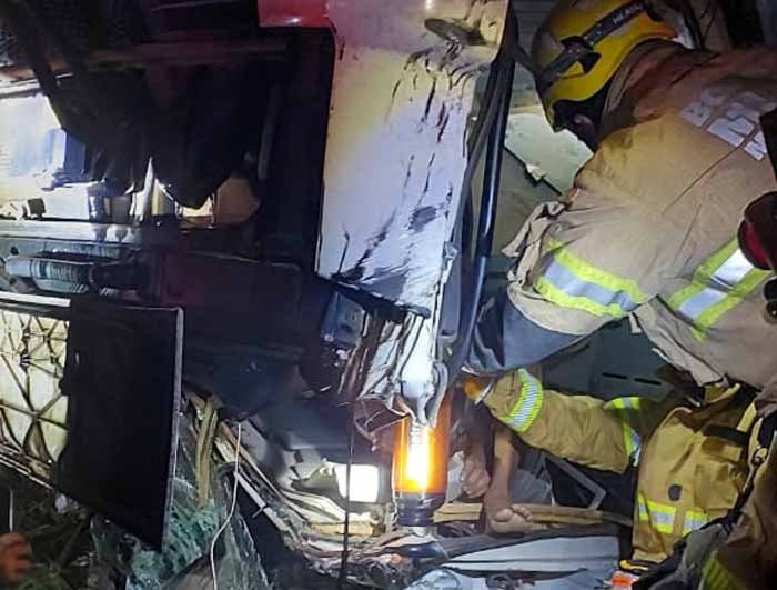 O trabalho de resgate foi difícil devido à posição em que o caminhão ficou, exigindo ação conjunta das equipes para retirar o motorista, que ficou preso nas ferragens. Após o resgate, a vítima, identificada como G.F.M.S., de 25 anos, foi encaminhada ao Hospital Margarida, em João Monlevade, com ferimentos leves e escoriações.