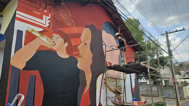 Em João Monlevade, mais um prédio público está sendo completamente transformado com pinturas multicoloridas. Artistas da pintura e do grafite trabalham na sede do Coral Monlevade, localizado no gramado da Prefeitura. Em todas as paredes estão sendo feitas pinturas de pessoas que têm relação com a música na cidade – a maioria mulheres – cantoras e compositoras.