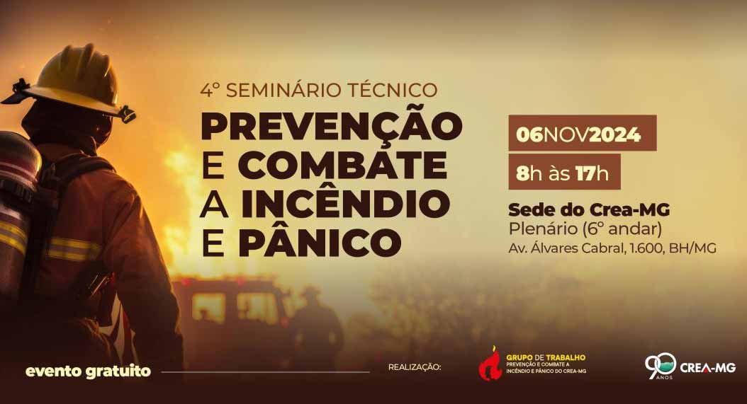 Com o objetivo de agilizar os processos de análise e otimizar os serviços de elaboração na área de prevenção e contenção de incêndios, o Conselho Regional de Engenharia e Agronomia de Minas Gerais (Crea-MG) realiza o 4° Seminário Técnico Prevenção e Combate a Incêndio e Pânico, em Belo Horizonte, no dia 6 de novembro de 2024. O evento irá abordar técnicas sobre projetos de eventos temporários de grande porte, as novas regras referentes à brigada de incêndio em hospitais e informações sobre perícias técnicas pós incêndio.