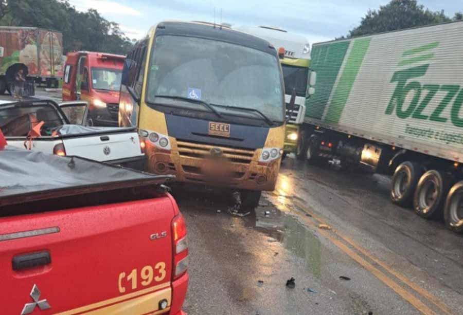 Na tarde desta sexta-feira (08/11), um acidente envolvendo três veículos deixou um casal de idosos ferido na BR-040, próximo ao km 627, no bairro São Dimas, em Conselheiro Lafaiete/MG. A colisão, registrada por volta das 17h35, envolveu um micro-ônibus Marcopolo/Volare, um caminhão Mercedes-Benz Atron 1319 e uma Volkswagen Saveiro.