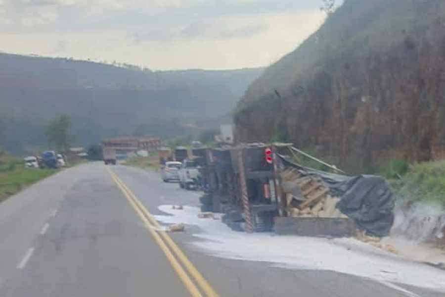 Na manhã desta terça-feira (12/11), por volta das 6h15, uma carreta carregada com trigo tombou na BR-381, próximo à estátua do Cristo Redentor, em Bela Vista de Minas. O motorista J.A.M., de 64 anos, relatou ter perdido o controle do veículo após cochilar ao volante enquanto seguia de Belo Horizonte para Ipatinga.