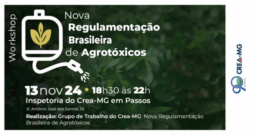 Com o objetivo de debater o cenário atual do uso dos agrotóxicos no Brasil, o Conselho Regional de Engenharia e Agronomia de Minas Gerais (Crea-MG) realiza o Workshop “Nova Regulamentação Brasileira de Agrotóxicos”, em Passos, no Sul/Sudoeste de Minas, no dia 13 de novembro de 2024. A nova Lei de Agrotóxicos, sancionada em 27 de dezembro de 2023, trouxe um novo panorama, alterando as regras de aprovação, uso e comercialização de produtos com substâncias agrotóxicas.