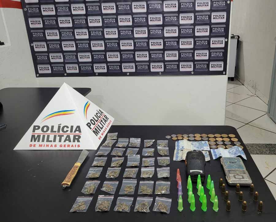 Na noite desta sexta-feira (15/11), por volta das 20h45, uma operação da Polícia Militar em São José do Goiabal resultou na apreensão de drogas, munições e outros materiais relacionados ao tráfico, além de um veículo utilizado no transporte ilícito. De acordo com o Boletim de Ocorrência, a ação ocorreu na Rua Cristiano Morais, no bairro São João, após uma denúncia que indicava a entrega de entorpecentes na região.