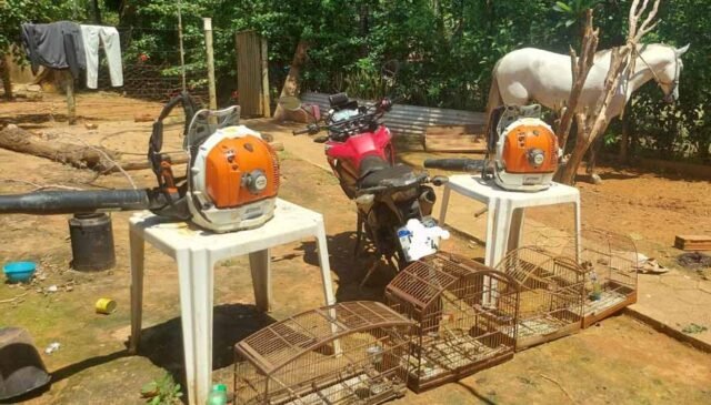 Na manhã desta terça-feira (19/11), a 17ª CIA PM Ind Polícia Militar de São José do Goiabal recuperou um cavalo furtado e realizou a apreensão de diversos itens irregulares, incluindo uma motocicleta adulterada, equipamentos de trabalho e pássaros da fauna silvestre. A ação aconteceu na Rua Primavera, após denúncia.