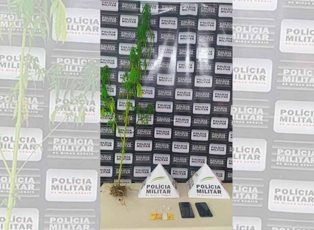 Durante a operação, a Polícia Militar apreendeu 04 pedras de crack; 02 celulares e 01 pé de maconha.