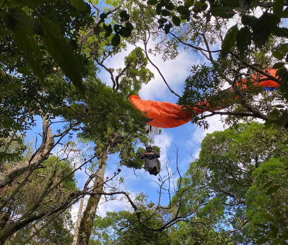 De acordo com os militares, o homem, identificado como Wilerson, relatou que havia decolado do Pico do Gavião e que, durante o voo, apesar da sua experiência como paraglider, cometeu um erro, entrando em uma zona instabilidade. Após o incidente, ele perdeu a sustentação, tendo, inclusive, que acionar o paraquedas que, devido à proximidade com as árvores, não pôde ser devidamente aberto.