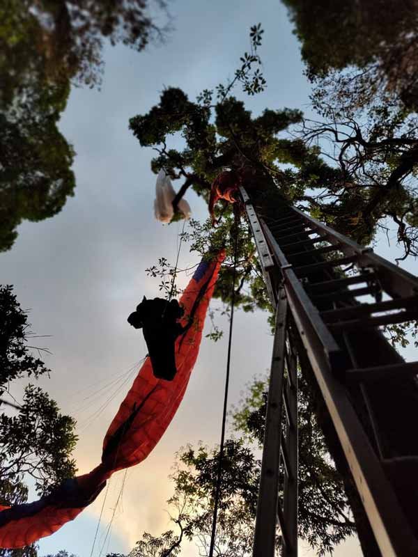 Nesta quinta-feira (21/11) por volta das 17h, a equipe do Posto Avançado do Corpo de Bombeiros de Andradas foi acionada, via 193, para o resgate de um praticante de paraglider que, após perder o controle do dispositivo, caiu bruscamente, ficando preso a uma árvore de aproximadamente 25 metros de altura, nas proximidades do Pico do Gavião, em Andradas.