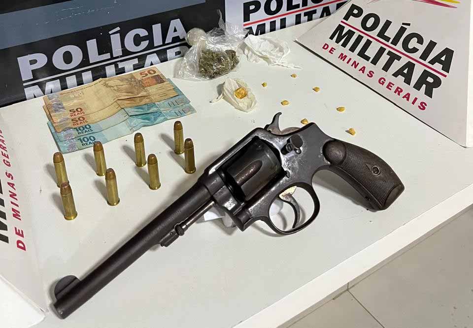 Durante as buscas foi localizado na cintura do autor, de 18 anos 01 revólver calibre 38 com 06 munições, além de 09 porções de crack.