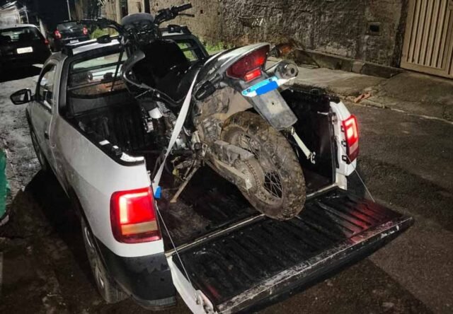 De imediato, as equipes policiais se deslocaram até o local indicado e realizaram buscas no terreno. Após uma intensa procura, a motocicleta foi localizada escondida na vegetação. Ao verificar a placa de identificação do veículo, foi constatado que havia uma queixa de furto registrada na cidade de Ipatinga na data de 09/11/2024.