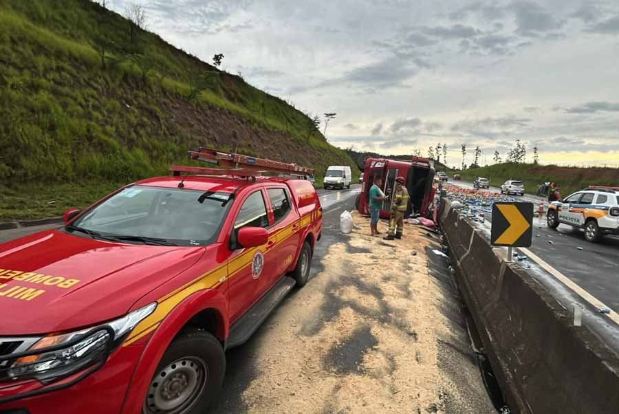 Na tarde de quinta-feira (09/01), um grave acidente foi registrado no km 788 da BR-040, próximo ao Expominas, em Juiz de Fora. Uma carreta carregada com cervejas tombou na pista, deixando quatro vítimas, incluindo duas crianças. Uma das vítimas ficou presa às ferragens.