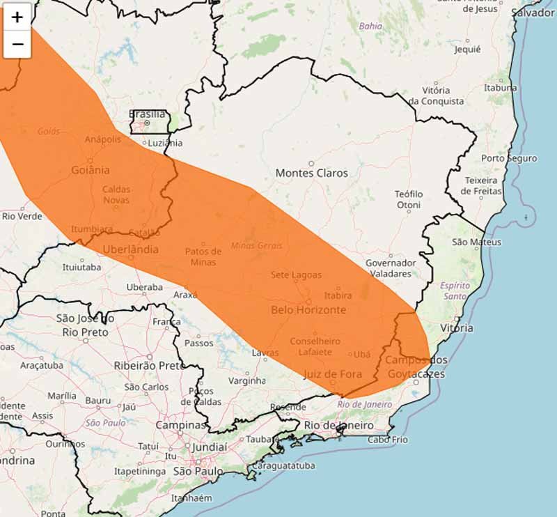 O Instituto Nacional de Meteorologia (INMET) emitiu um aviso de tempestade com grau de severidade perigo para 435 cidades de Minas Gerais, incluindo Itabira, Manhuaçu e João Monlevade, nesta terça-feira, 22 de janeiro de 2025. A previsão é válida das 13h00min até as 23h59min do mesmo dia e traz riscos significativos para a região, como chuvas intensas, ventos fortes e a possibilidade de queda de granizo.
