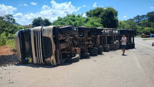 Nesta quarta-feira (05/02), um acidente chamou a atenção na BR-381, km 333, em Nova Era, próximo ao bairro Pedra Furada. O Grupo de Atendimento Voluntário de Emergência (GAVE) foi acionado para atender a ocorrência envolvendo o tombamento de uma carreta carregada com carvão vegetal.