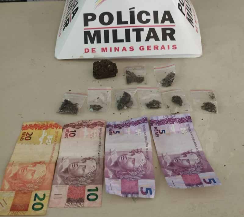 Ao realizar a abordagem, os policiais verificaram o interior do pote e encontraram 08 buchas de maconha e uma porção fracionada da mesma droga. Além disso, também foi apreendida a quantia de R$ 40,00 em dinheiro com o menor.