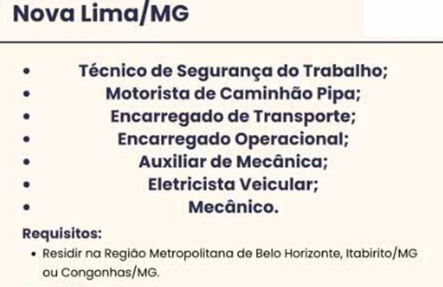 A Construtora Terraço está com diversas oportunidades de emprego abertas para profissionais que desejam integrar a equipe na região de Nova Lima/MG e localidades vizinhas. As vagas disponíveis são para diferentes funções, com requisitos e benefícios atrativos para os candidatos. Confira abaixo as oportunidades: