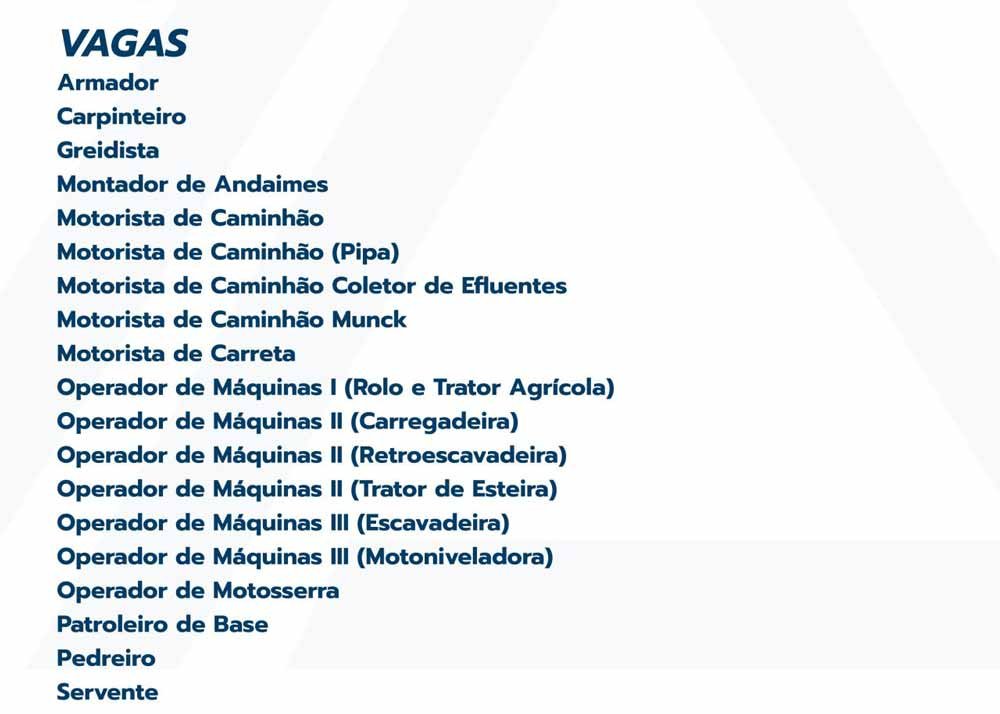 - Operador de Máquinas I (Rolo e Trator Agrícola)