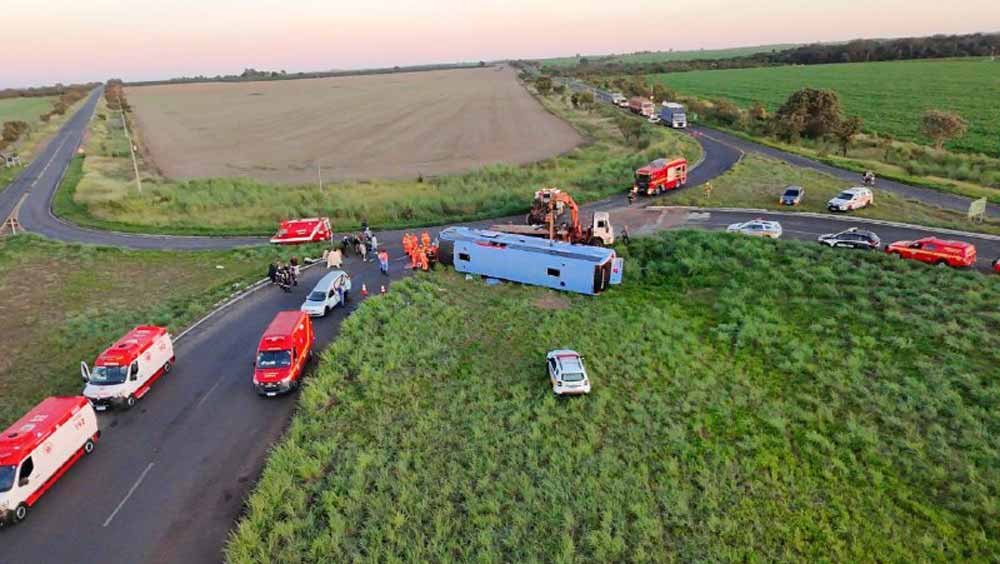 Um gravíssimo acidente foi registrado na madrugada desta terça-feira (08/04), por volta das 3h40, na rodovia MG-223, sentido Tupaciguara, próximo ao trevo de Queixinho, na zona rural de Araguari, no Triângulo Mineiro. Um ônibus com cerca de 45 passageiros e um motorista capotou, deixando 10 mortos, sendo duas crianças, e dezenas de feridos.