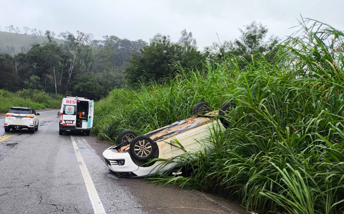 De acordo com as informações iniciais, um veículo WV Fox branco, com placas de Ipatinga, seguia viagem de Belo Horizonte para o Vale do Aço quando o motorista se assustou com uma carreta que vinha no sentido contrário. Com isso, o condutor perdeu o controle da direção e o carro capotou às margens da rodovia.