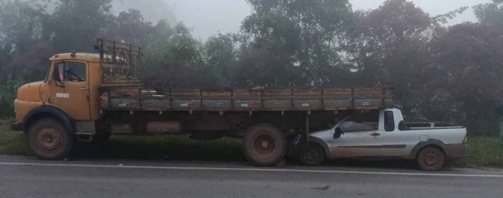 Segundo relatos, uma das caminhonetes colidiu na traseira do caminhão e ficou presa sob o veículo de carga. O condutor do automóvel, um idoso de 60 anos, morreu na hora. Já o motociclista, um jovem de 26 anos, também não resistiu aos ferimentos e faleceu antes de receber atendimento médico.