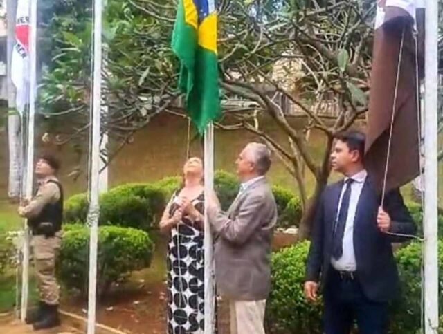 Durante o evento, realizado em frente a Sede da Prefeitura Municipal, o Capitão realizou o hasteamento da bandeira do Estado de Minas Gerais, ao lado do prefeito municipal, Dr. Laércio Ribeiro, e do presidente da Câmara Municipal, vereador Fernando Linhares, que hastearam, respectivamente, as bandeiras do Brasil e de João Monlevade.