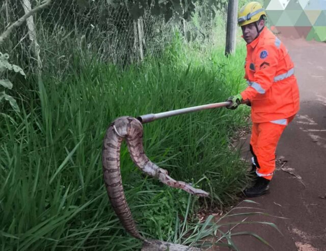 ARAXÁ – Uma equipe do Corpo de Bombeiros foi acionada na tarde de terça-feira (29/04) para realizar a captura de dois animais silvestres no bairro Barreiro, em Araxá. A ocorrência inusitada envolveu duas serpentes da espécie jibóia que estavam no quintal de uma residência localizada na rua Águas do Araxá.