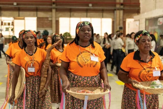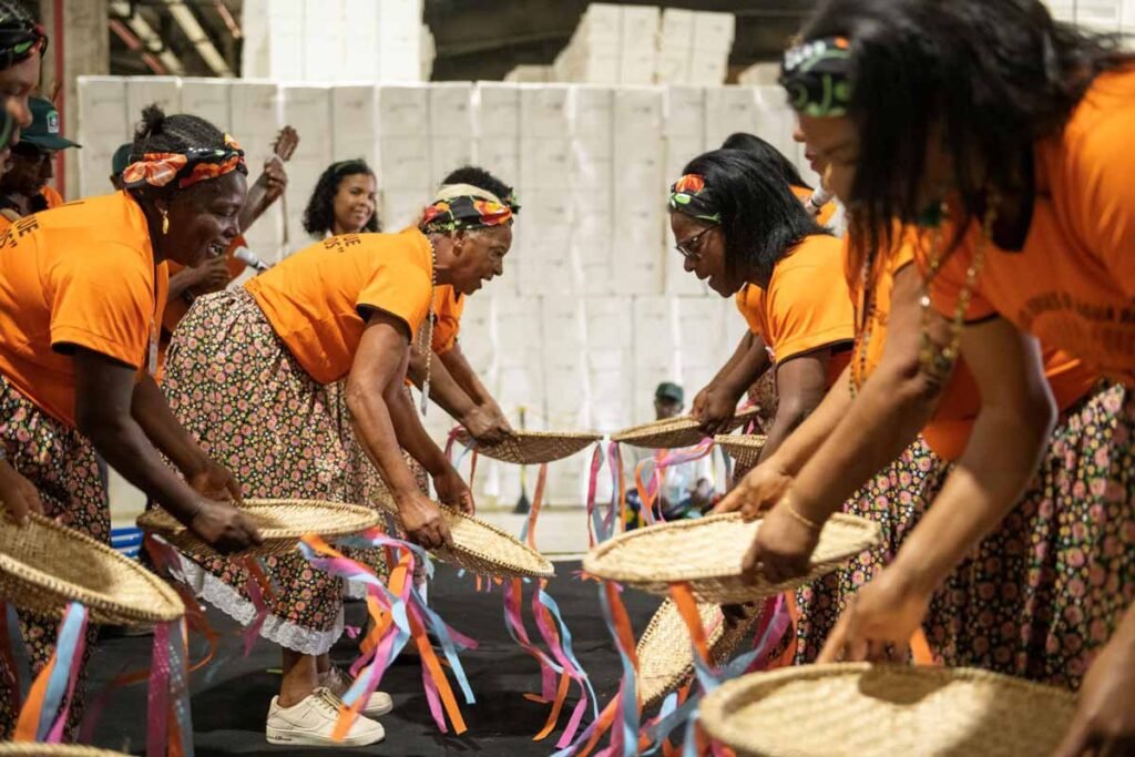 Integrantes da comunidade quilombola Jorges de Águas Branca apresentam produtos e tradições culturais, destacando a riqueza das identidades locais e regionais. Créditos: CENIBRA