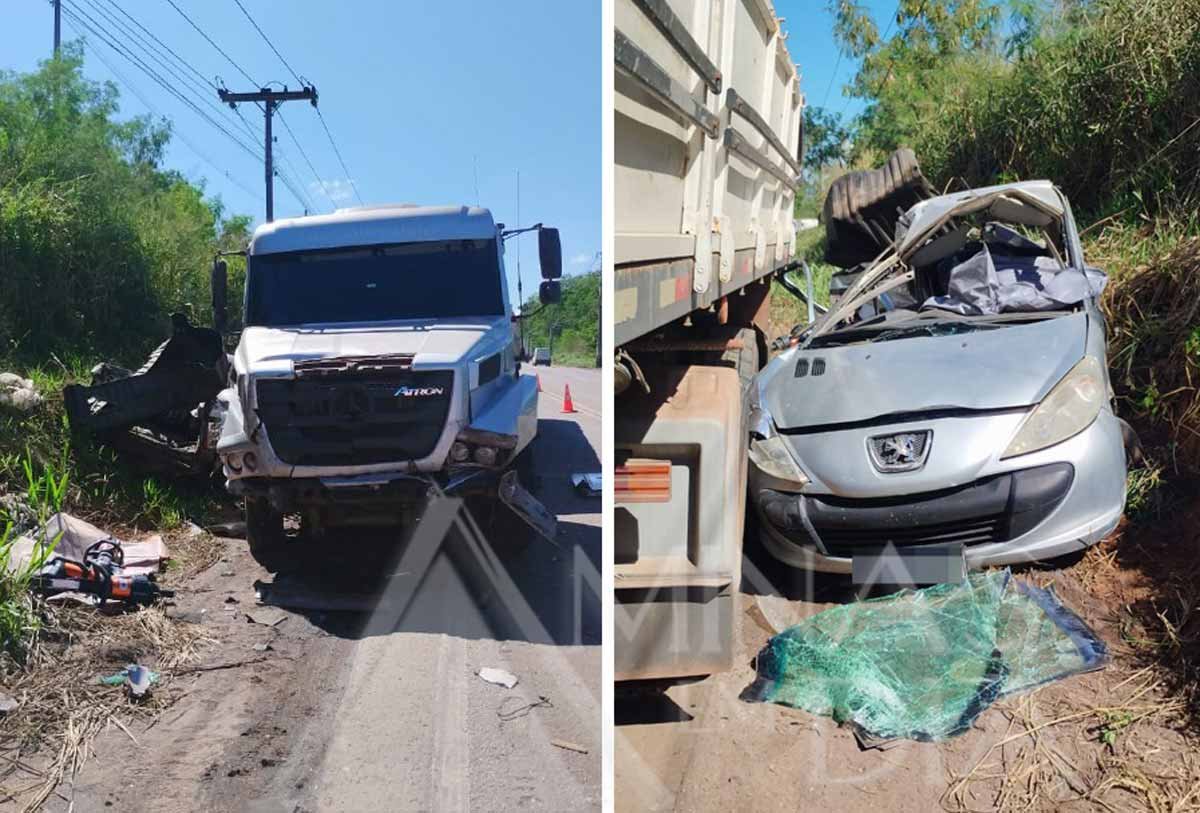 O carro sofreu danos estruturais severos e o motorista ficou preso às ferragens. As carretas, por sua vez, tiveram avarias na lataria, mas não chegaram a tombar. Os ocupantes dos veículos de carga — um condutor que seguia sozinho e um casal na outra carreta — saíram ilesos e estavam em segurança fora dos veículos.