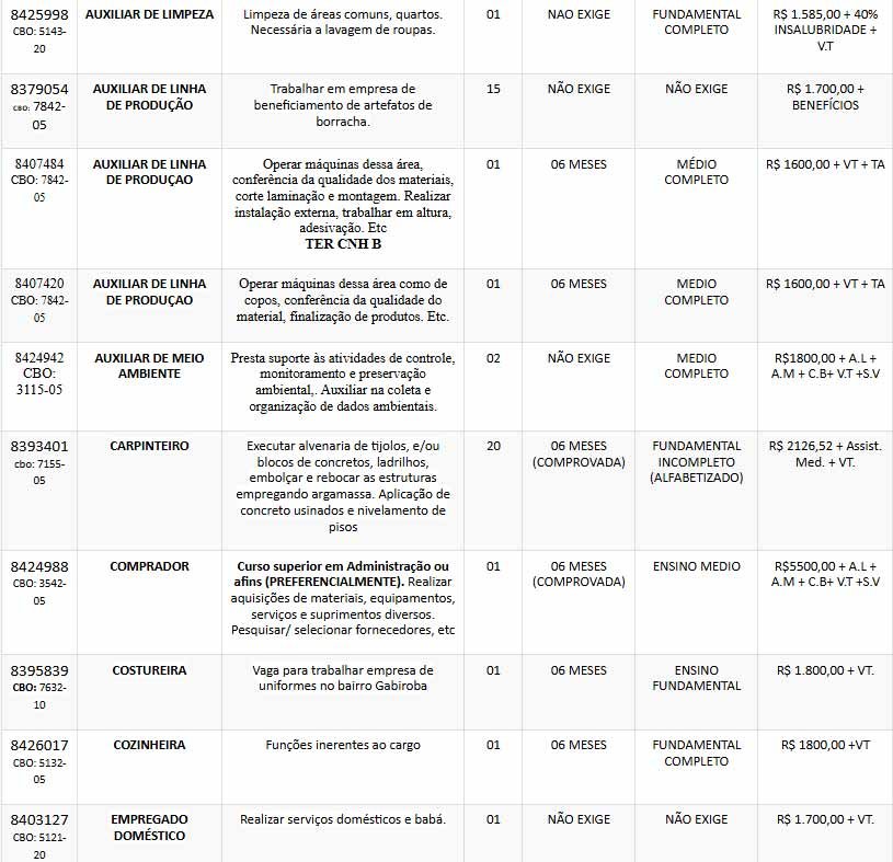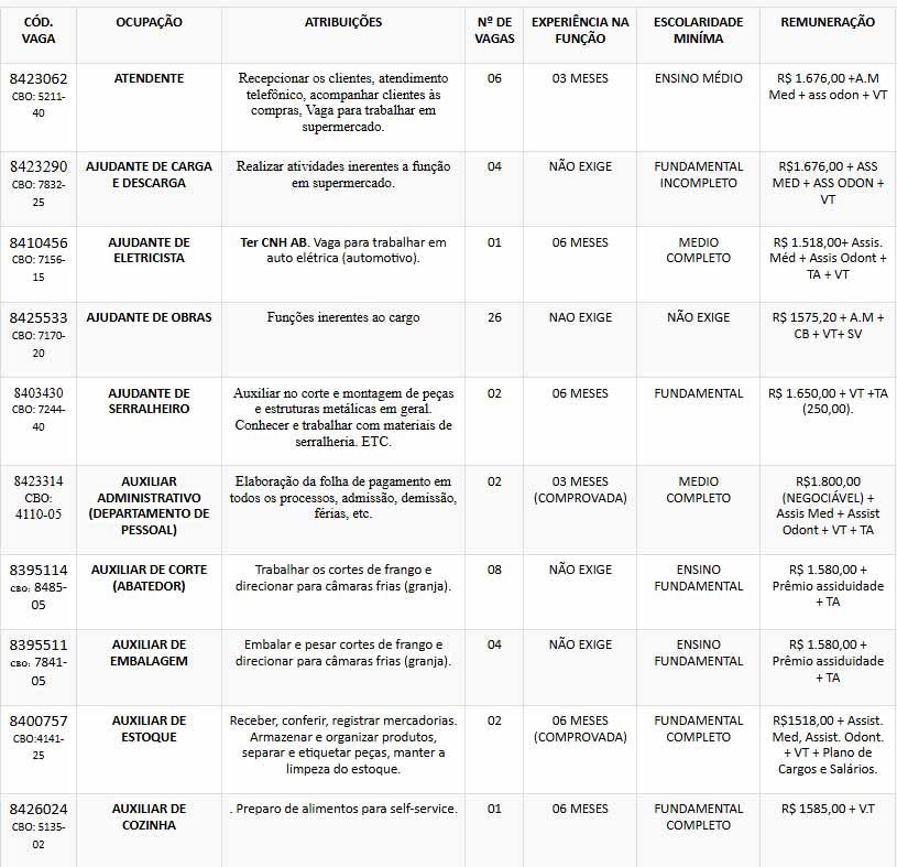 Em Itabira, no setor de serviços gerais, que reúne o maior número de oportunidades: são 26 vagas com salários de R$ 1.575,20, contemplando funções diversas e com requisitos acessíveis.
