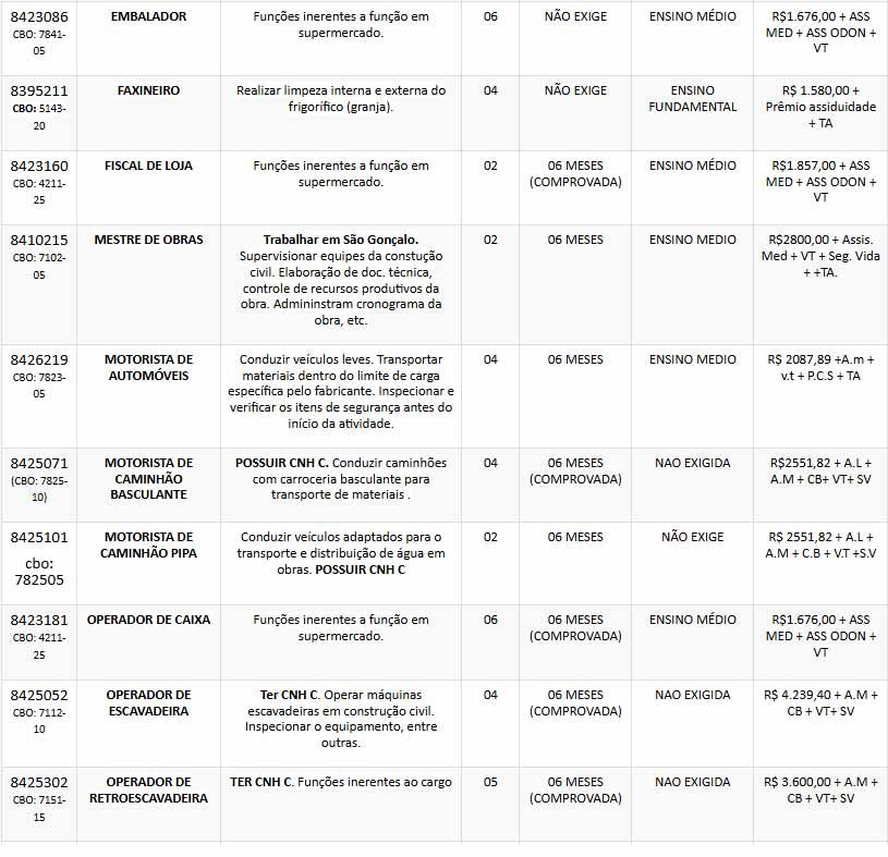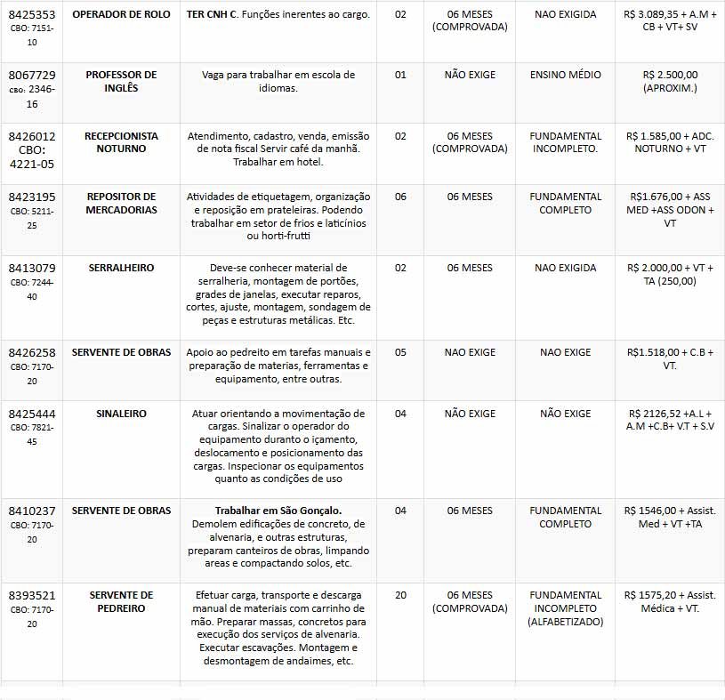 Confira as oportunidades abaixo: