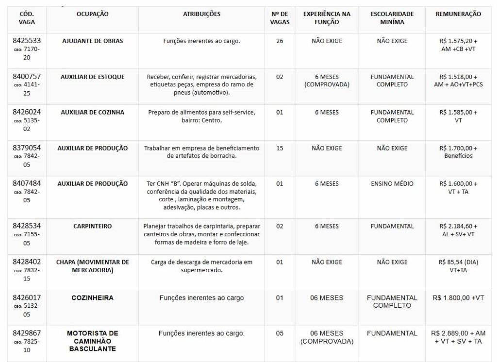 O SINE Itabira está com diversas oportunidades de emprego abertas para profissionais de diferentes áreas e níveis de experiência. Entre os destaques estão vagas para auxiliar administrativo, auxiliar de produção, eletricista, mecânico de manutenção, motorista de caminhão, soldador, representante comercial, jovem aprendiz, entre outras funções.
