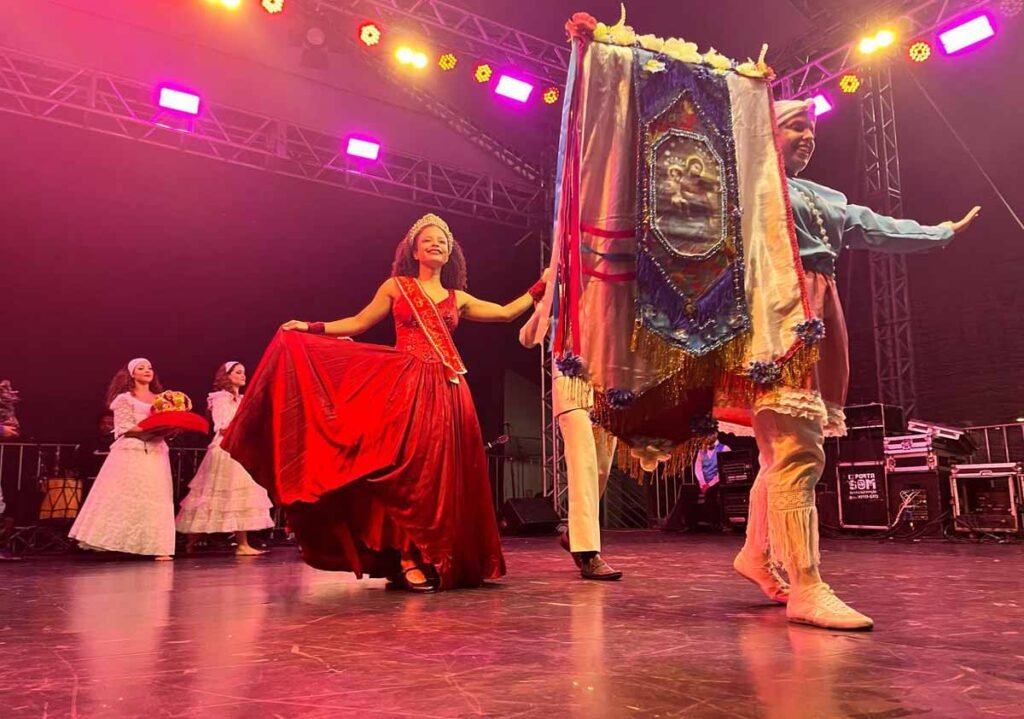 O sábado (31/05) foi marcado por duas grandes atrações: o tradicional Levantamento de Mastro e Mistérios do Rosário e a apresentação do Grupo Sarandeiros, que emocionou o público com o espetáculo “Dança Brasil”.