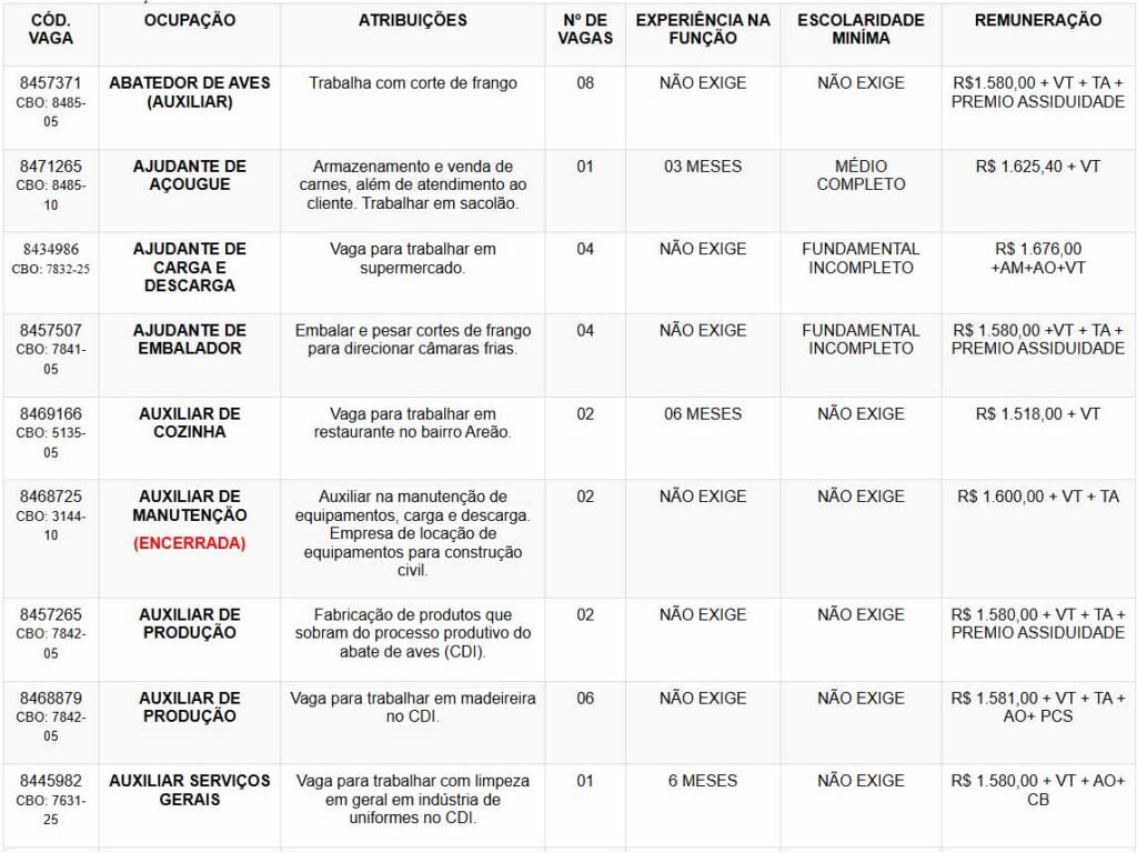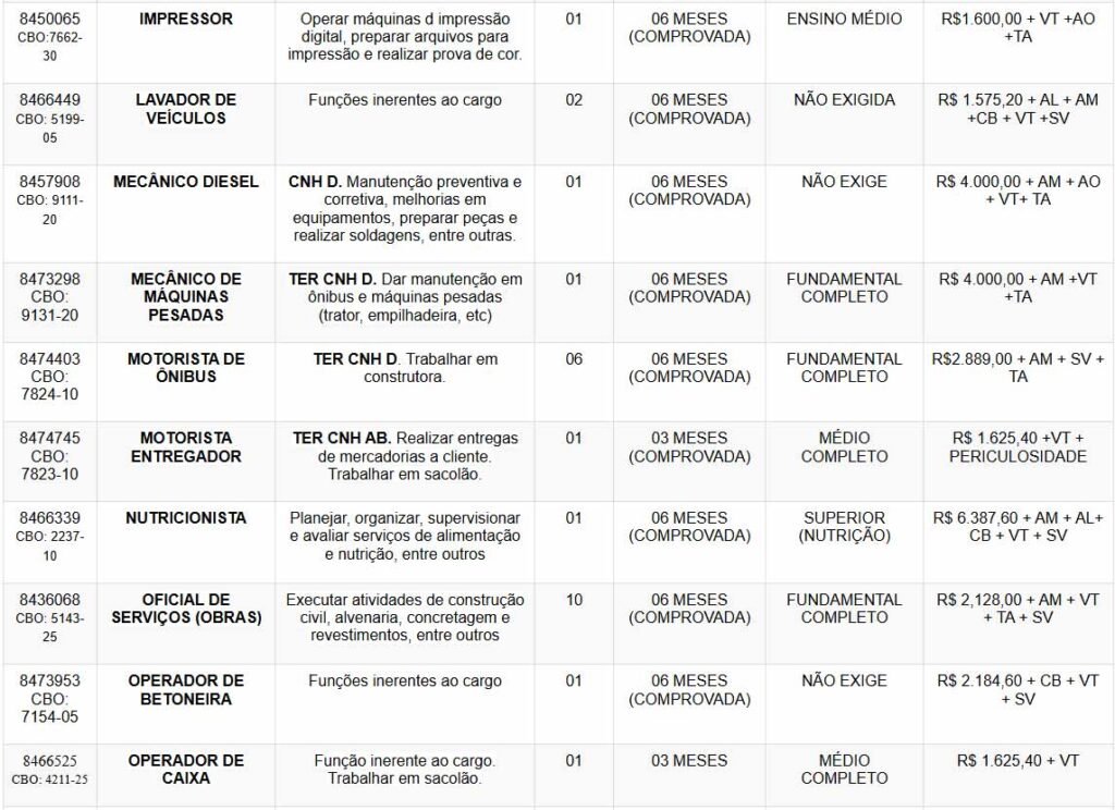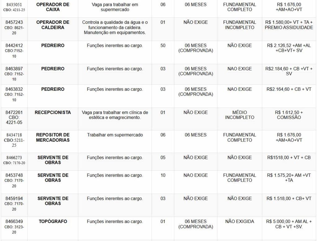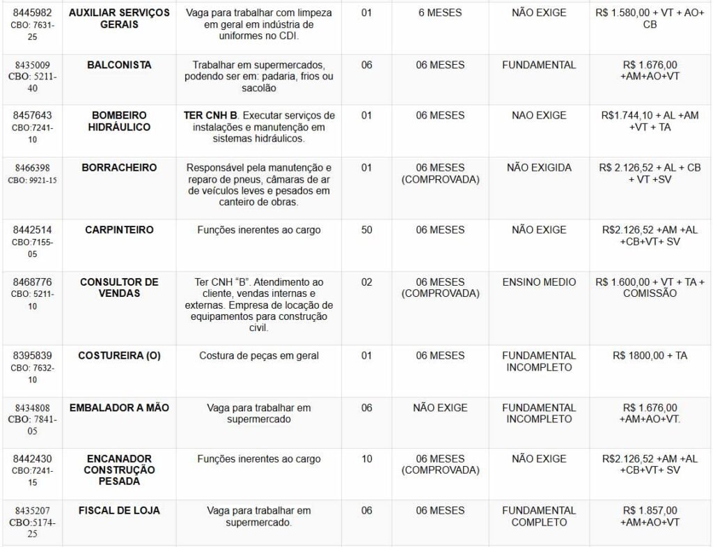 Os interessados nas vagas devem comparecer munidos de DOCUMENTOS e CTPS no SINE – Itabira, av. das Rosas, 410, bairro São Pedro.