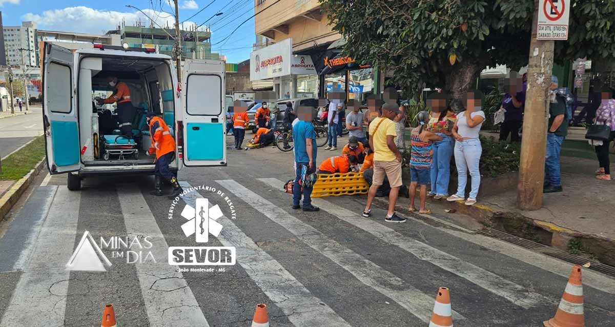 Uma senhora de 60 anos foi atropelada por uma motocicleta na tarde deste sábado (28), por volta das 13h54, na Avenida Wilson Alvarenga, em frente ao Kiko’s Bar, no bairro Carneirinhos, em João Monlevade. A ocorrência mobilizou três viaturas do Serviço Voluntário de Resgate (Sevor), que prestaram atendimento às vítimas no local.