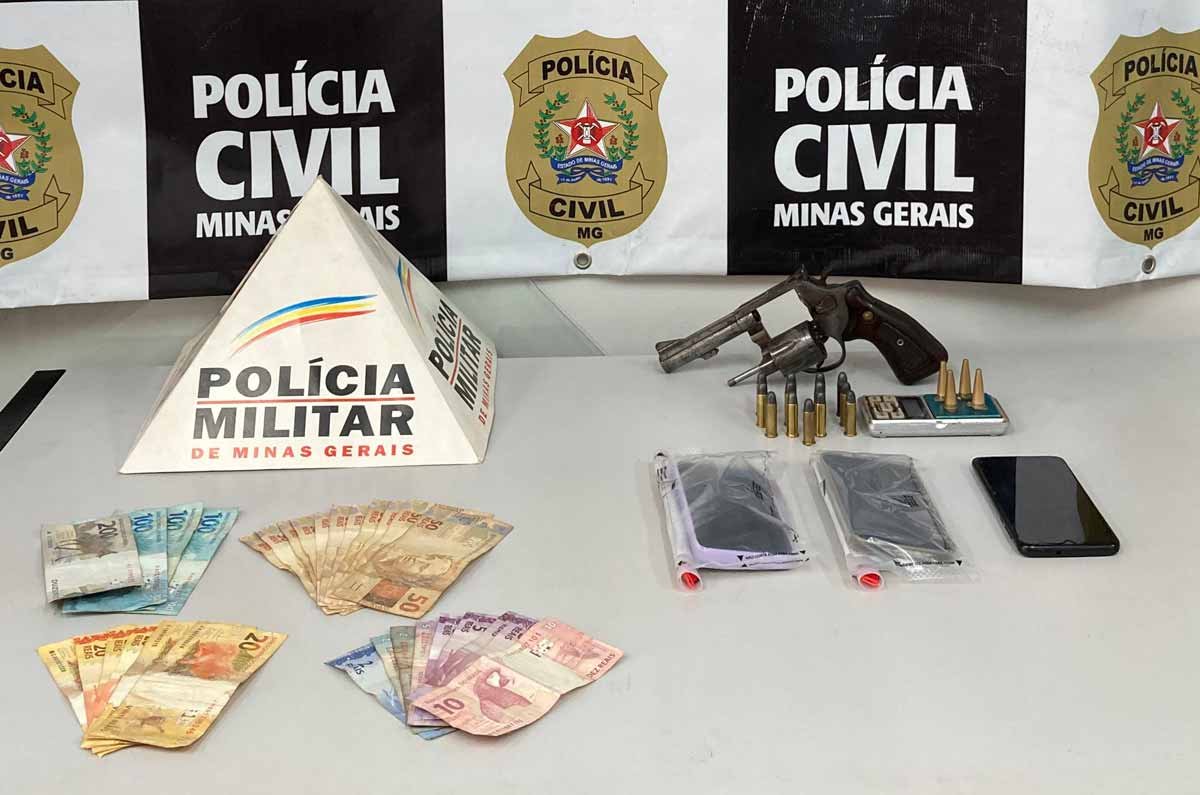 Durante a operação, os policiais apreenderam um revólver calibre .38 com 13 munições, seis pinos de cocaína, R$ 1.211,00 em dinheiro, três celulares, uma balança de precisão e um veículo Corolla. No local, também foram encontrados cinco pássaros silvestres mantidos em cativeiro de forma irregular.