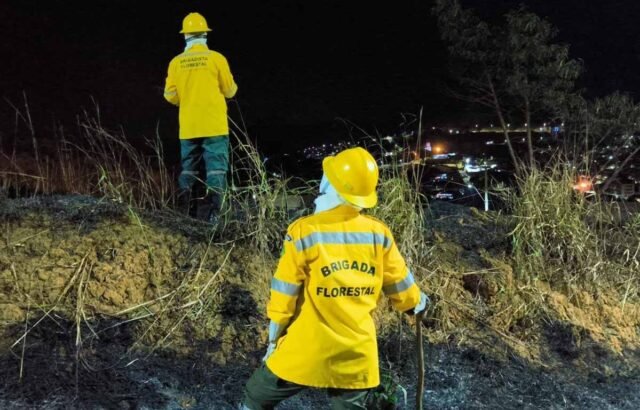 A Brigada Florestal Voluntária de Nova Era foi acionada na noite desta sexta-feira (25) por volta das 18:22min, para conter um incêndio em vegetação no loteamento Jardim Cecília, localizado no bairro Centenário.