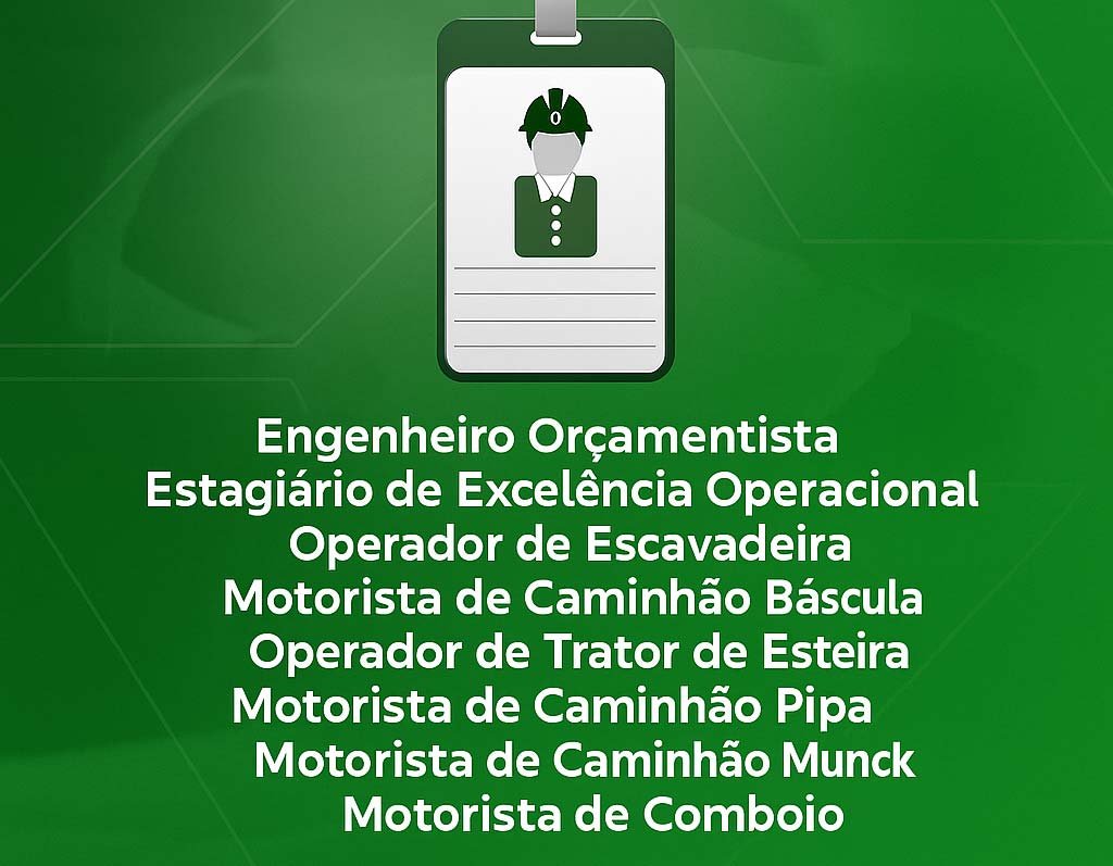 A Construtora Vale Verde, sediada em Itabira (MG) e referência em soluções para construção civil pesada, anunciou novas oportunidades de emprego para profissionais da região.