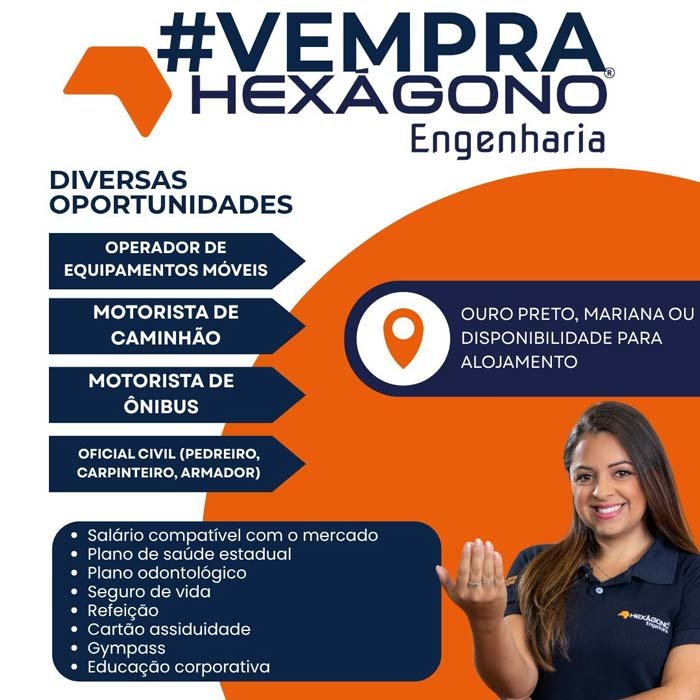 A Hexágono Engenharia anunciou novas oportunidades de emprego para profissionais com experiência mínima de 6 meses em áreas operacionais. As vagas contemplam funções como Operador de Equipamentos Móveis, Motorista de Caminhão, Motorista de Ônibus e Oficial Civil (pedreiro, carpinteiro e armador).