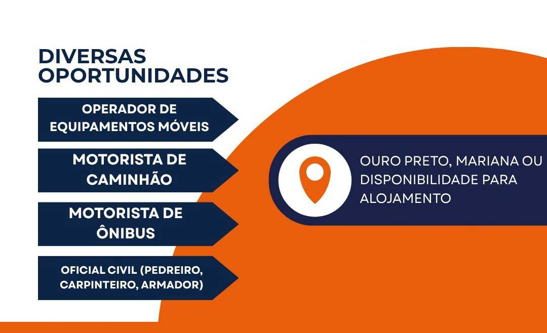 As contratações são para moradores de Ouro Preto, Mariana ou para quem tenha disponibilidade para alojamento.