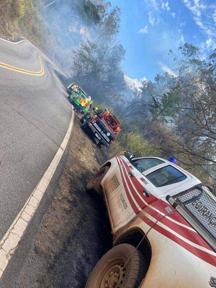 Em caso de incêndios florestais, a população pode entrar em contato com a Brigada Florestal Voluntária pelo 0800 000 3407 (ligação gratuita), telefone fixo (31) 3407-8260 ou WhatsApp (31) 99954-4254.