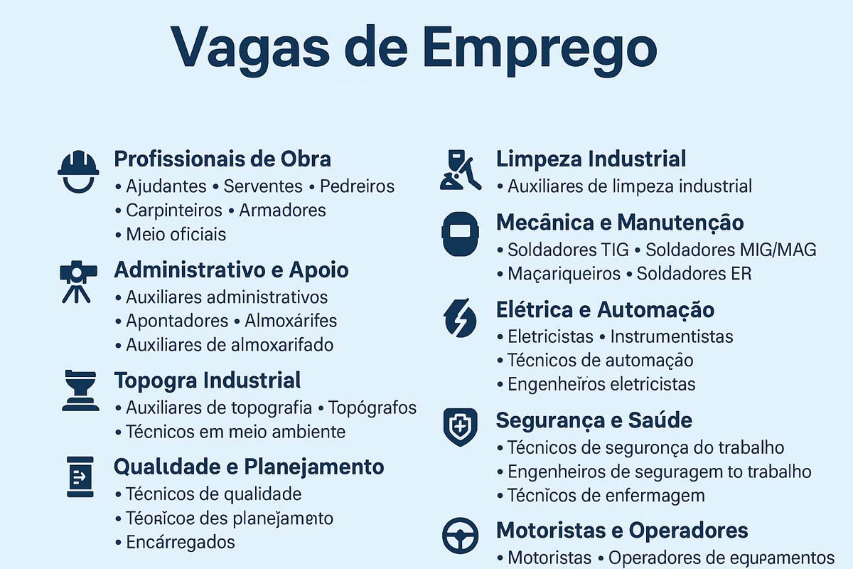 A Irricom, empresa reconhecida na área de engenharia e infraestrutura, anunciou a abertura de novas vagas de emprego para atuação em uma obra na cidade de Congonhas, Minas Gerais. A empresa está em busca de profissionais comprometidos e qualificados para diferentes áreas e funções, com foco na formação de uma equipe sólida e preparada.