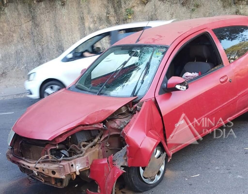 Na manhã deste sábado (9), por volta das 9h, uma motorista colidiu contra um poste na rua Tabelião Waldemar de Alvarenga Lage, em frente ao condomínio Residencial Água Fresca.
