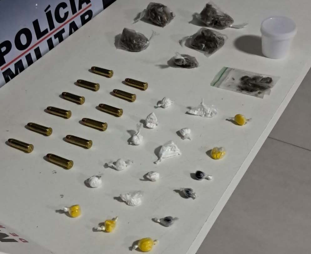 Na busca domiciliar, os militares localizaram maconha, cocaína, haxixe, droga sintética e doze cartuchos intactos de munição calibre .38. Os dois homens foram presos em flagrante e encaminhados à Delegacia de Polícia Civil, juntamente com todo o material apreendido.