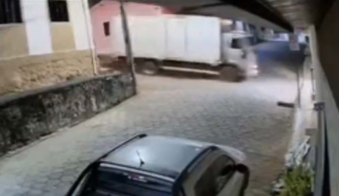 O incidente ocorreu por volta de 20h30, na Rua Virgínio Batista Pereira, próximo à Praça Monsenhor Dutra. Imagens de uma câmera de segurança registraram o momento em que o veículo despencou morro abaixo, colidindo contra o pergolado da praça e atingindo três carros estacionados.