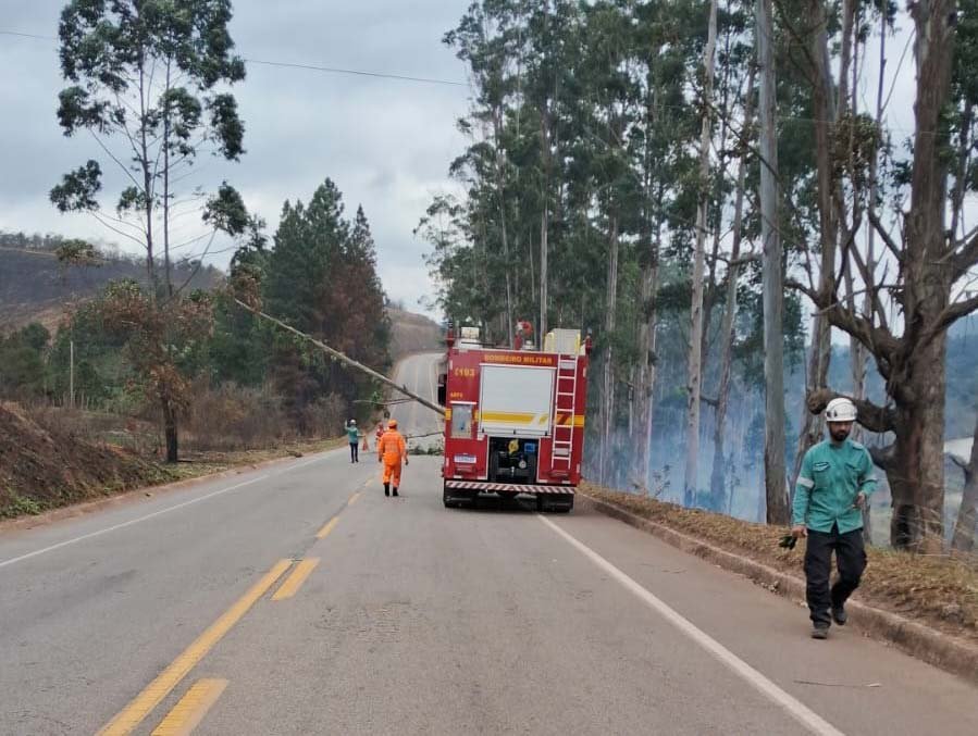 No período da tarde, os bombeiros retornaram ao mesmo ponto devido à reincidência do risco de queda de árvores, mantendo a rodovia fechada enquanto realizavam os trabalhos de contenção e limpeza.