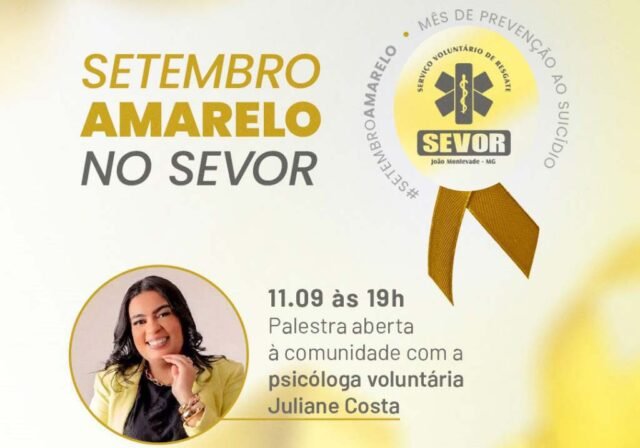 Na noite desta quinta-feira (11/09/2025), o Serviço Voluntário de Resgate (Sevor), de João Monlevade, realizou uma palestra aberta ao público em alusão ao Setembro Amarelo, campanha nacional de prevenção ao suicídio e valorização da vida.