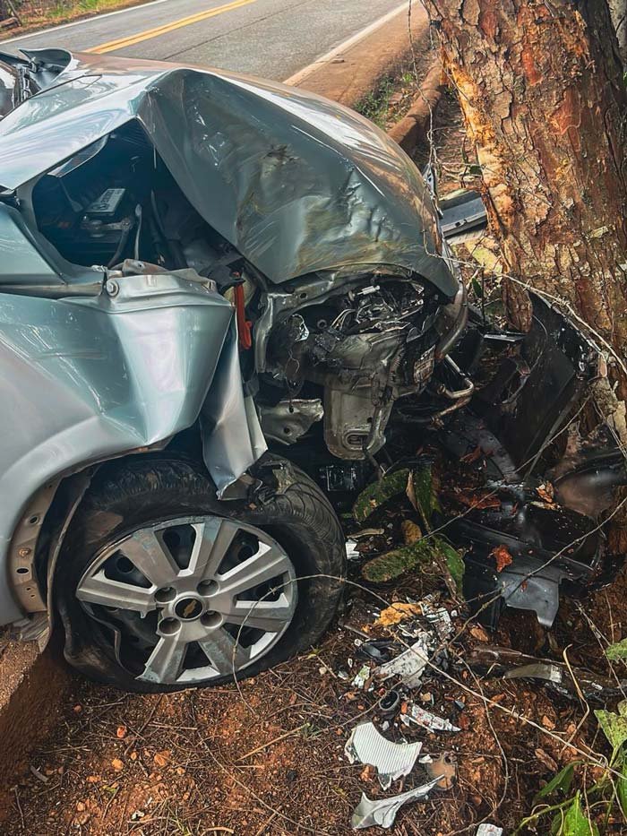 De acordo com informações, o motorista de um veículo de passeio, um homem de 29 anos identificado pelas iniciais M.F.M, sofreu um mal súbito ao volante e perdeu o controle da direção, colidindo contra uma árvore.