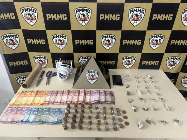 Durante as diligências, os militares encontraram substâncias entorpecentes, dinheiro e equipamentos utilizados para o preparo e comercialização de drogas. A mulher presa no local foi encaminhada, juntamente com os materiais apreendidos, à Delegacia de Polícia Civil para as providências legais. O homem alvo do mandado não foi localizado e segue sendo procurado.