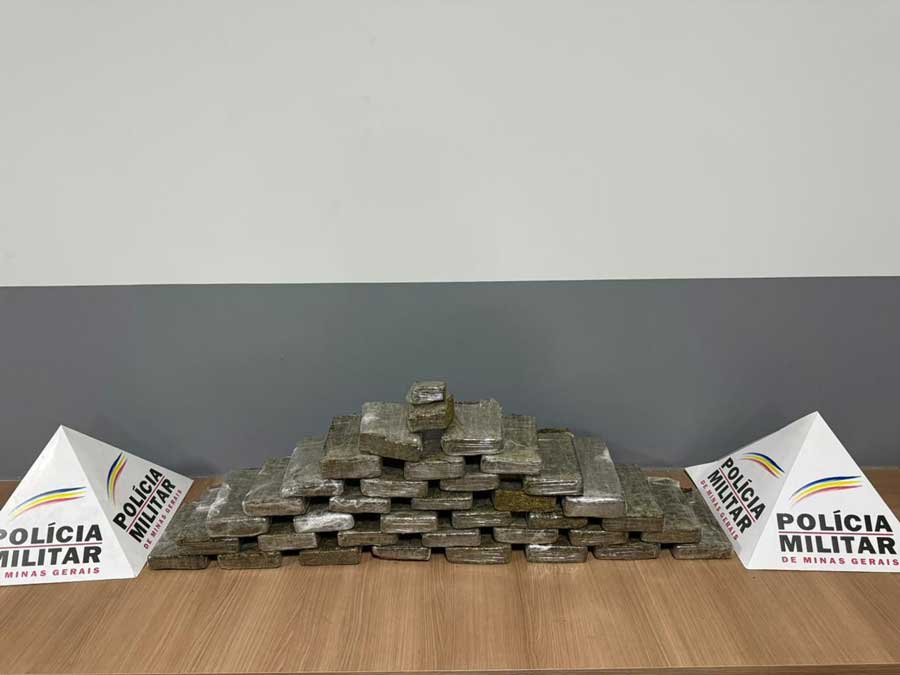 Após cerco e bloqueio, o automóvel foi abordado e, em seu interior, foram encontradas 34 barras e 3 tabletes de maconha, além de um telefone celular.
