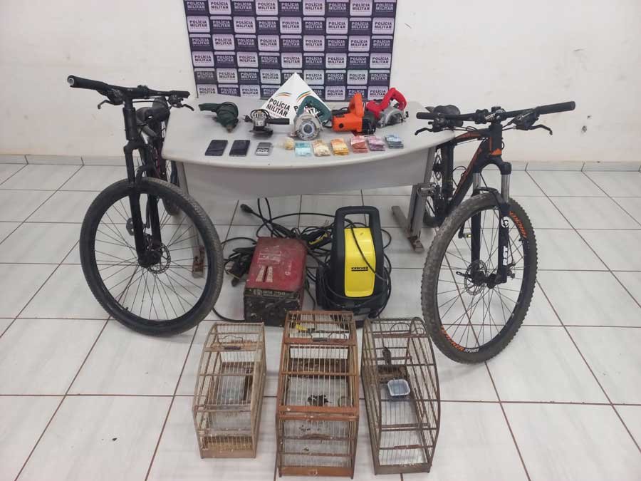 Uma porção de crack; Uma balança de precisão; Dois telefones celulares; Ferramentas elétricas diversas (furadeira, esmerilhadeira, serras mármore, lavadora de pressão e máquina de solda); Duas bicicletas, três pássaros silvestres e três gaiolas de madeira.